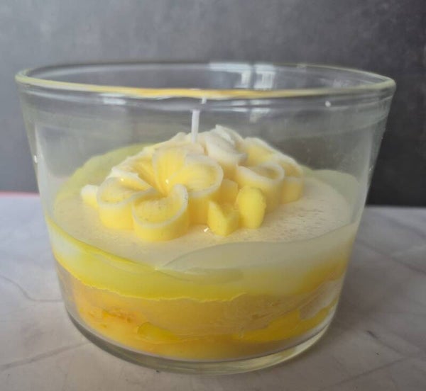 Schlicht, elegante Duftketze in Gelb gehalten mit schönem Blumenmotive
